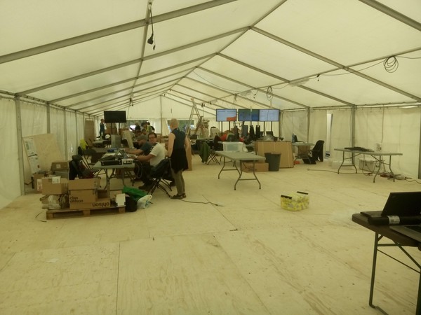 Am 14. Juli kurz nach dem Mittag kamen wir im Camp an. Wir statteten dem Stabzelt einen Besuch ab. Der Aufbau war in vollem Gange. Wir konnten einen Einblick in die Organisation und Planung des ganzen Lagers erhalten.