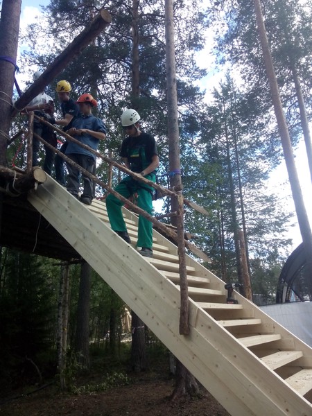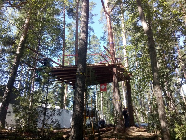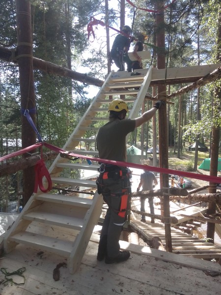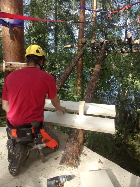 Am ersten Lagertag konnte auch die letzte Treppe noch montiert werden. Es war allerdings noch einiges an kleinen Arbeiten notwendig, bis das Baumhaus komplett fertiggestellt war.