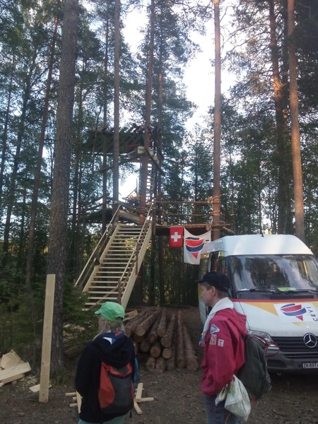 Am letzten Tag des Aufbaulagers wurden die zweite und dritte Plattform gerostet. Auch die Treppe von der zweiten Plattfrom zum Zwischenpodest wurde verlegt.